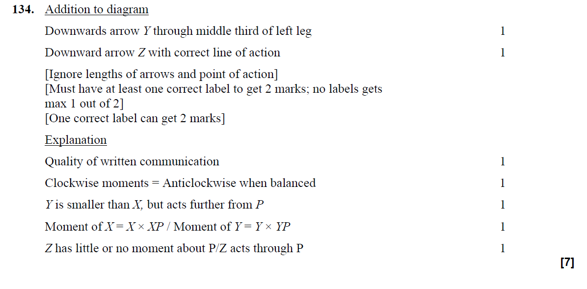 Use of principle of moments i.e. a clockwise moment equal to an anti-clockwise moment
